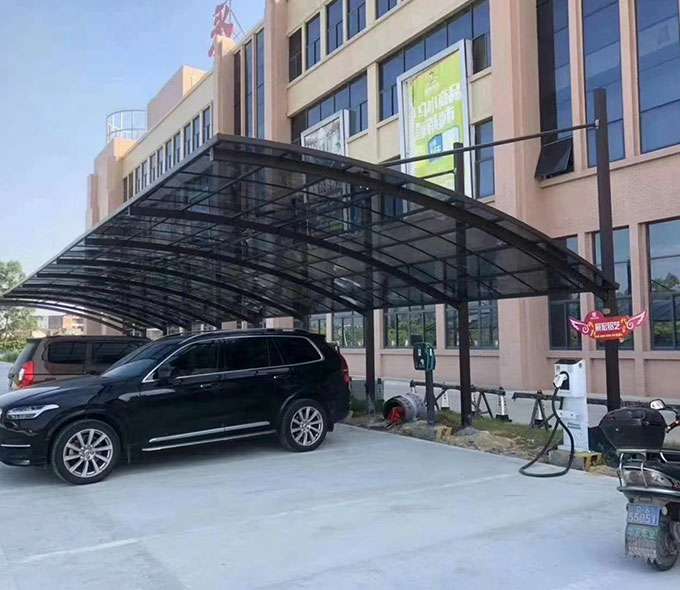 款式:单边型车棚、合抱型车棚、蝴蝶型车棚