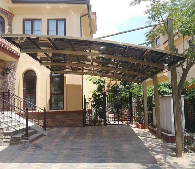 款式:单边型车棚、合抱型车棚、蝴蝶型车棚