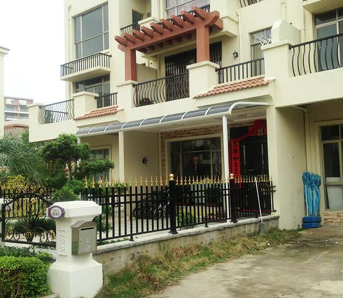 南宁冉国教育内容开发有限公司雨棚系列产品是高强度铝合金和聚碳酸酯板(耐力板)的结合。主体结构全部采用高品质、高强度铝合金材料精加工而成,表面特殊的工艺处理,具备氧化保护,不生锈,不变色,大大提高了雨棚的使用寿命。